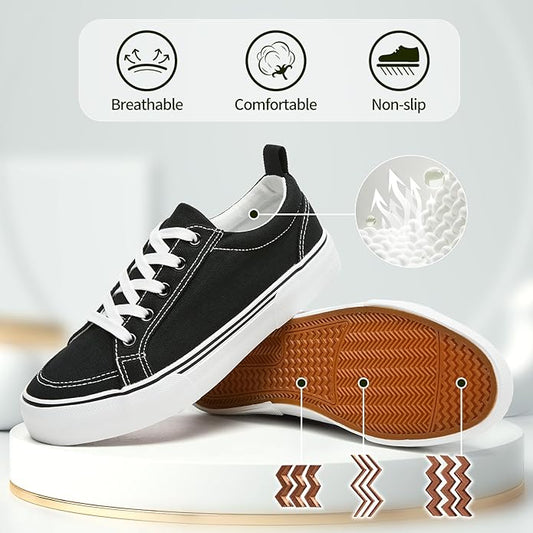Uoidru Canvas Shoes for Women White Tennis Sneakers Womens Black Shoes Casual Comfortable Low Top Skateboard Fashion Sneakers