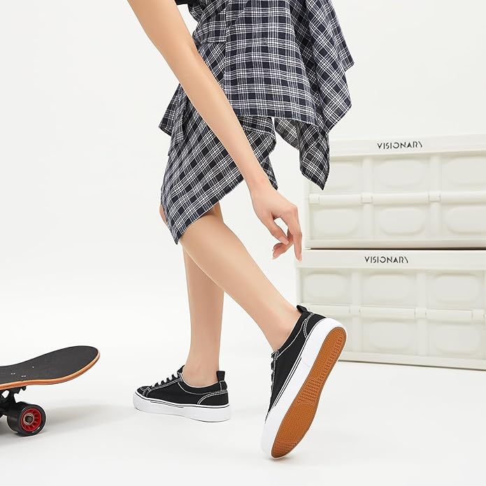 Uoidru Canvas Shoes for Women White Tennis Sneakers Womens Black Shoes Casual Comfortable Low Top Skateboard Fashion Sneakers